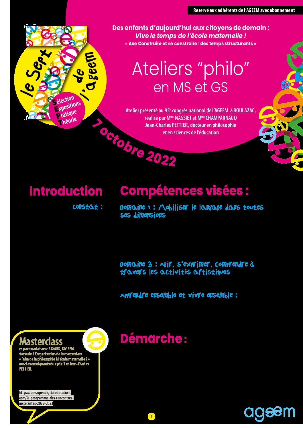 Fiche atelier réalisée par l’Association Générale des Enseignants des Écoles et des classes Maternelles publiques.